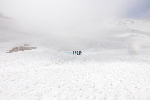Von der Arktis zu den Alpen: Gletscher schmelzen und Berge stürzen. Doch sehen wir nur die Spitze des Eisbergs? ERES Projects nimmt das »ewige« Eis aus Künstlersicht in den Blick. Eine ortsspezifische Installation der US-amerikanischen Künstlerin Meg Webster (*1944, Schülerin von V. Acconci, D. Judd, R. Serra) holt Münchens nächstgelegenen Gletscher mitten in die Stadt. Für die partizipative Arbeit »Contained Water Pair (Water from the Nearest Glacier, from the Nearest River)« wurden 130 Liter Gletscherwasser des Nördlichen Schneeferners in Kanistern und Rucksäcken von der Zugspitze ins Tal gebracht. Unterstützt wurde die Aktion von der Umwelt-Forschungsstation Schneefernerhaus. Webster greift mit ihrer direkten Umformung von Naturmaterialien in skulpturale Formen Themen wie Erderwärmung und Klimawandel überraschend anders auf. Außerdem in der Theresienstraße zu sehen: Der »Schneefleck« des Aktions- und Konzeptkünstlers Roman Signer (*1938). Er veranschaulicht Zeit als drängenden Faktor, während Mathias Kessler (*1968) mit seinem auf minus 30 Grad gekühlten »frozen mirror« der sommerlichen Hitze draußen den Spiegel vorhält und mit der Kamera hineinzoomt in das gefährdete Eisschild Grönlands.