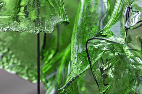 Tue Greenfort, Ulva I und III, 2020/21, Glas, Holz, Acrylschnur bzw. Draht, jeweils 50 x 50 x 300 cm (variabel), Foto: ERES Stiftung, Thomas Dashuber
