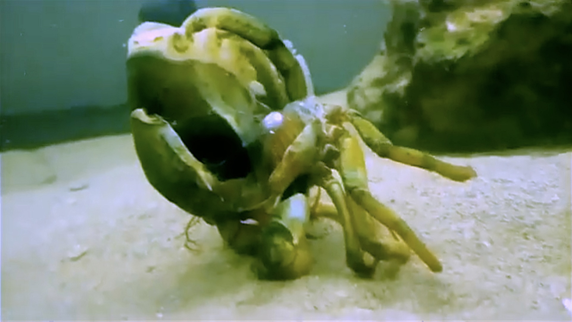 Diese Idee wird im Ausstellungsraum als bewegtes Bild visualisiert: Die Projektion einer sich häutenden Krabbe, die sich in eine alte Schale zurückzieht, fungiert als präzise Metapher für den Zustand des Forts von Sant’ Andrea – ein Moment radikaler Verletzlichkeit, der zugleich Transformation und Fortbestand ermöglicht.